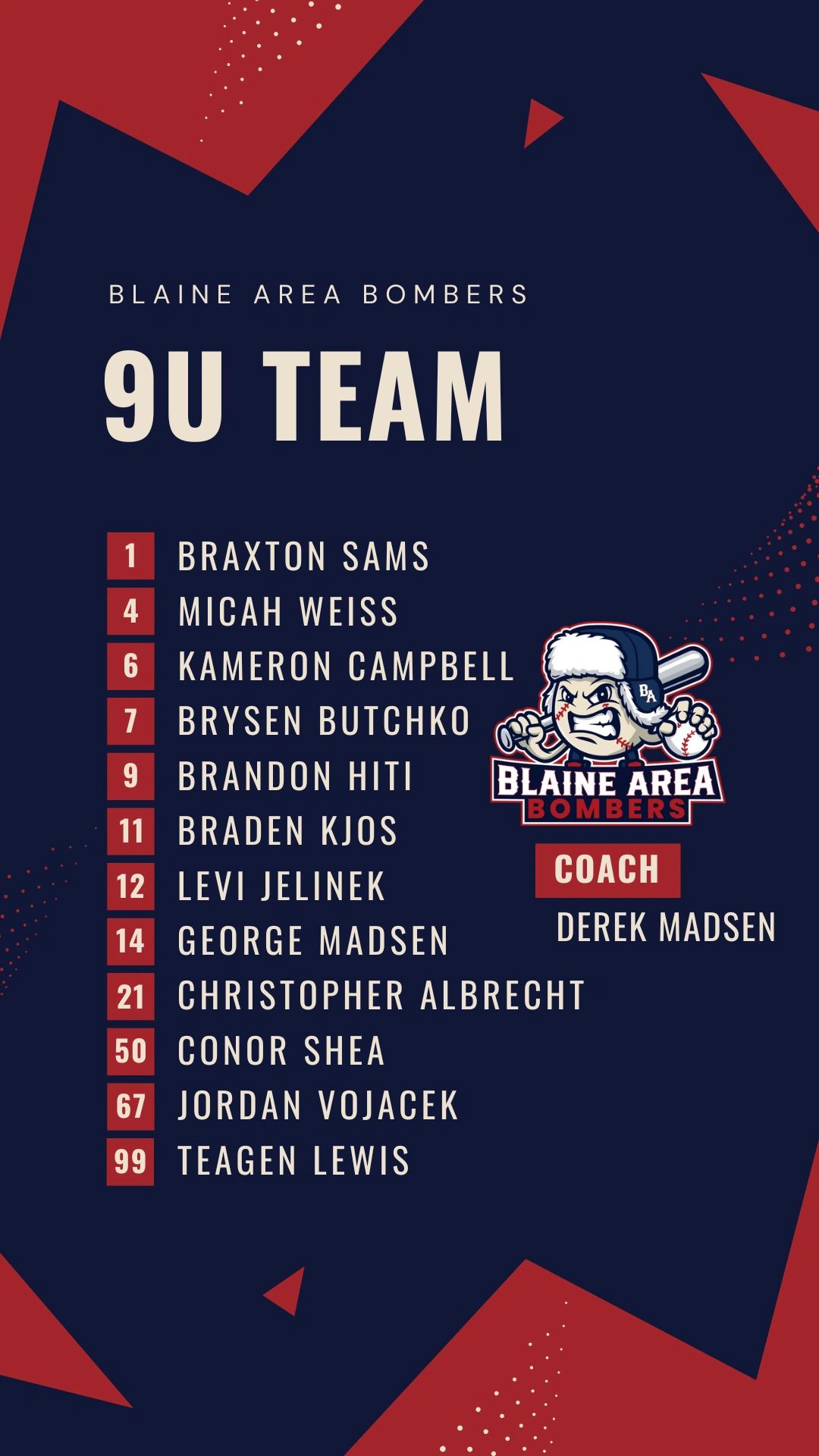 9U BA Team: head coach, derek madsen